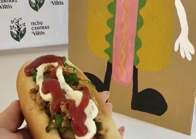 Pas mus vyko linksma ir gardi Dešrainių diena. Žaidėme linksmus žaidimus, susijusius su dešrainių tema – buvo daug juoko ir gerų emocijų. Vėliau visi draugiškai kibome į darbą – gaminome dešrainius. Kiekvienas dešrainis buvo unikalus – tiek išvaizda, tiek skoniu! O galiausiai – valgėme! Smagiai pabendravome, pasidžiaugėme vieni kitų kūrybiškumu ir pasisotinome gardžiais kąsneliais.